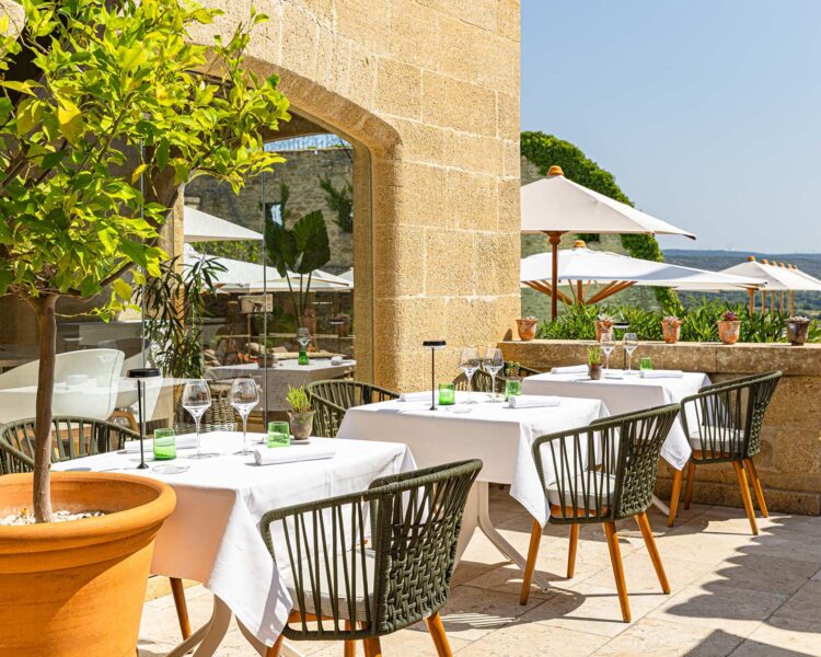 Mit seiner schlicht gehaltenen Ausstattung mitten in einem Renaissancegebäude bie-tet das Restaurant eine Gourmetkarte für das Abendessen und eine leichte und un-komplizierte Mittagskarte, die am Pool serviert wird. Sie erreichen das Restaurant über eine kleine Brücke, die sich über das alte Dorf spannt. Von hier aus können Sie die Wasserspeier und die Kupfer- und Glaslaternen sehen...